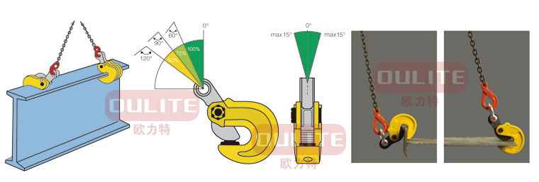 .單只翻轉鉗允許起吊的最大重量為額定載荷,吊裝作業中可單只使用,水平吊運時必須加橫梁